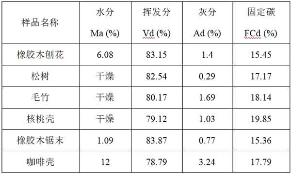 幾種生物質(zhì)原料工業(yè)分析數(shù)據(jù)見表1。